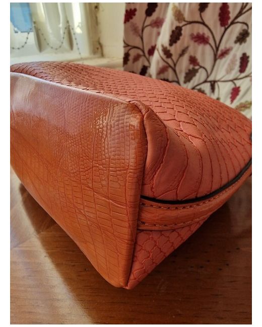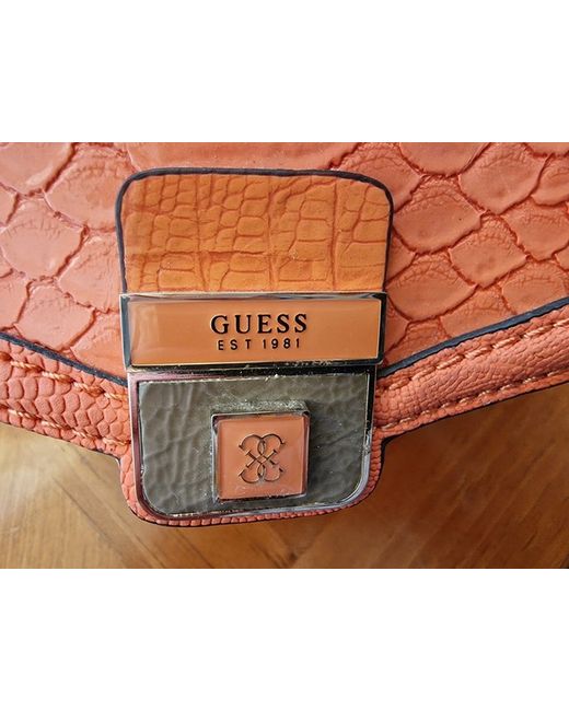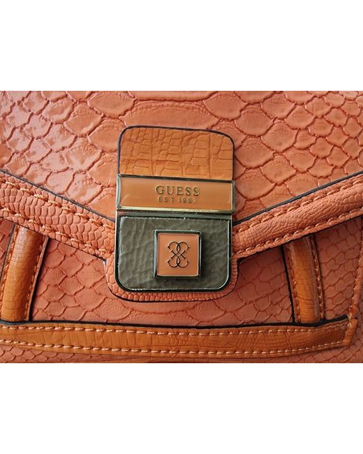 Crafted by renowned fashion brand GUESS, this chic in demand super cute mini handbag with front logo pocket is a must-have accessory for any stylish woman. The vibrant orange snake print texture exterior is complemented by a contrasting bold multi print lining, creating a striking and feminine colour palette. Made from premium leather, the bag promises durability and a luxe finish. The design features a compact size ideal for carrying essentials, with a comfortable contrast beige handle. Gold hardware adds a subtle touch of elegance, enhancing the bag's overall sophistication. Whether for a day out or an evening event, this mini tote is a versatile addition to any outfit.