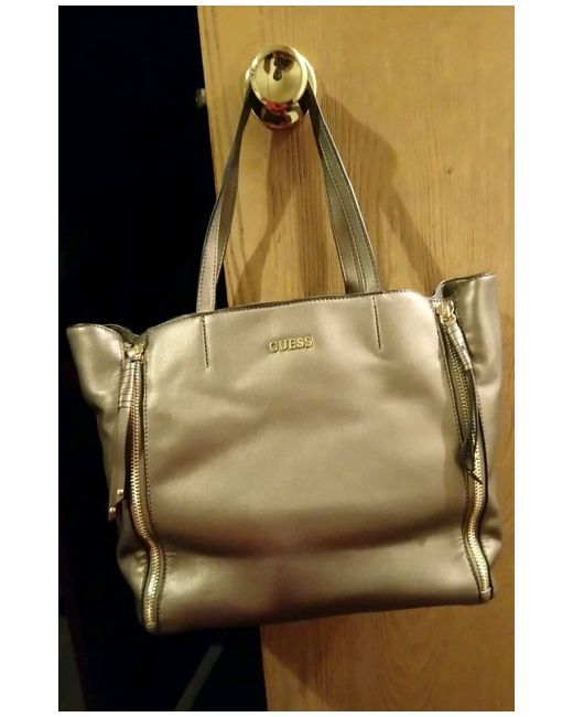 Elevate your style with this stunning Guess Ladies Handbag. Crafted with a sleek silver exterior and a luxurious silk lining, this tote is perfect for any occasion. The large size and spacious interior make it ideal for carrying all your essentials, while the designer theme adds a touch of sophistication to your look. The handbag features the iconic Guess logo and is made from high-quality materials that guarantee durability and longevity. Whether you're dressing up for a night out or running errands during the day, this handbag is the perfect accessory that will complement any outfit. With some peels as shown in the pictures