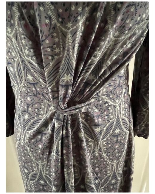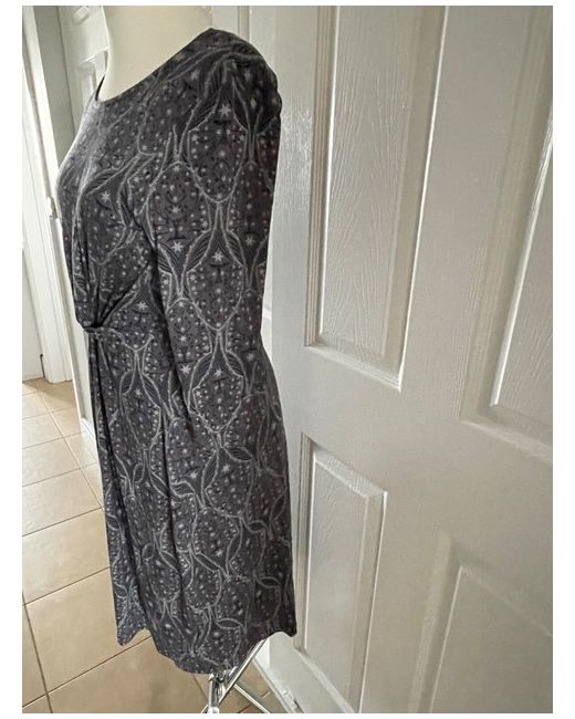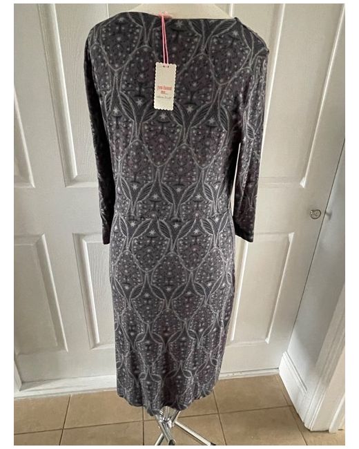 White Stuff Grey Patterned Trellis Jersey Dress Size 14 Stretchy Length Shoulder To Hem 43.5".