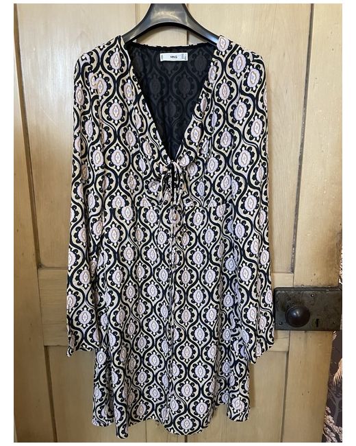 A striking shift dress from Mango in unworn condition, with a tied gather at the front and long sleeves.