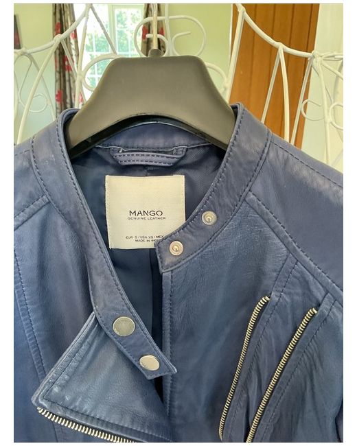 Add a touch of style to your wardrobe with this stunning blue leather jacket from Mango. The vibrant blue colour is eye-catching and sure to turn heads, making it the perfect addition to any outfit.