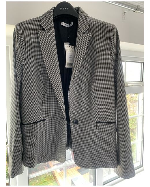 Take your look to the next level with this stylish dogstooth blazer. The black blazer is new with tags from Mango and made of wool. It is a basic jacket that comes in size 14. Perfect for women who love the high fashion look. The jacket is sure to make you stand out from the crowd. Get the perfect fit and make a statement with this beautiful blazer from Mango.
