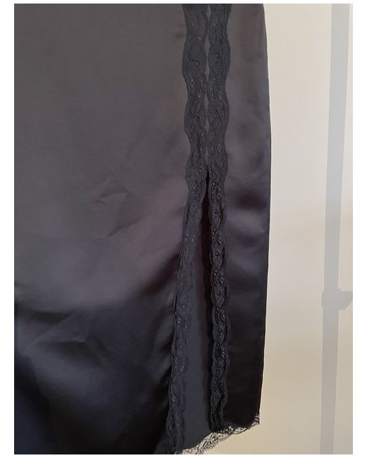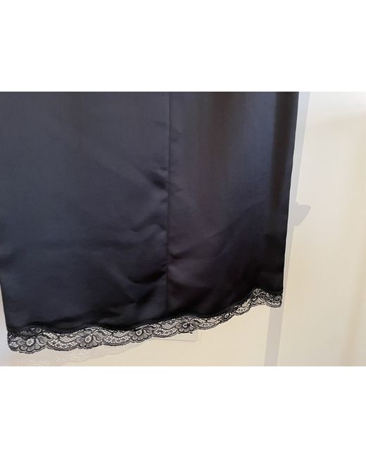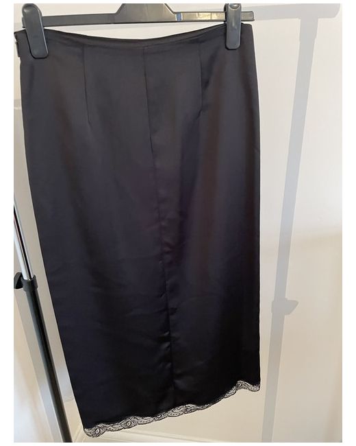 Beautiful fitted black satin skirt with side slit and lace trim around the bottom of the skirt and along the side slit. Looks great with knee high boots, flat boots or heels. Zip at back. Never worn, no tags. Size small