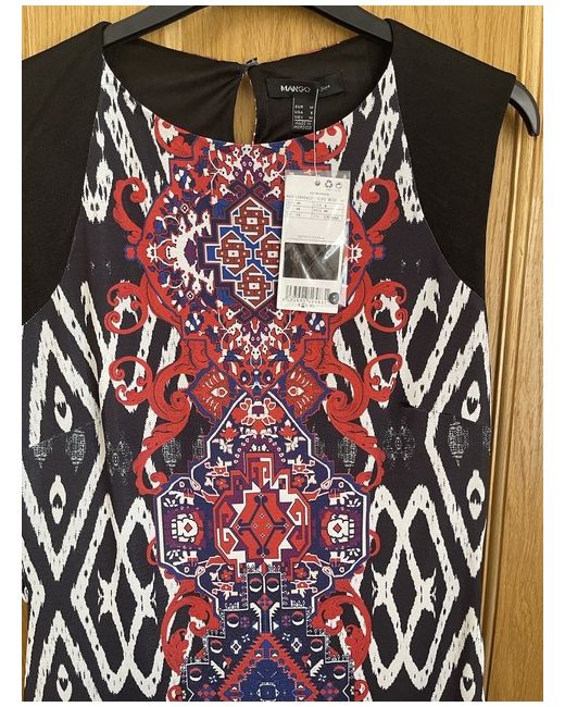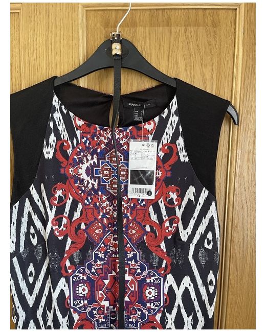 This is a new maxi mango dress. Black with red and purple print design. The dress is exactly 64 inches long! I’m 5ft 11 and it reaches the floor on me without wearing any shoes. So dress would suit a tall lady. It’s brand new, still with tags and comes with a removable belt. The belt is exactly 36 inches wide. Please feel free to message me should you have any questions or require further info. Thank you!