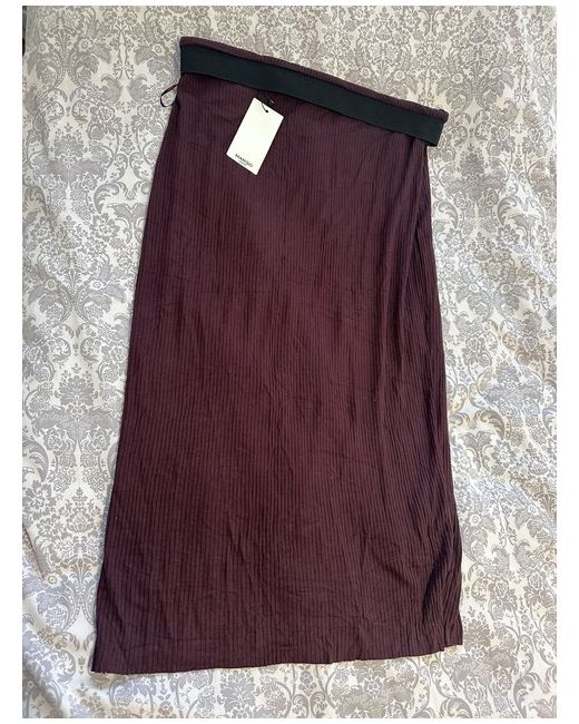 Elevate your wardrobe with this stunning burgundy skirt from Mango. Made of a lightweight blend of viscose and elastane, this midi-length skirt is perfect for both casual and formal occasions. The skirt features a stylish striped pattern and a straight & pencil style, making it a versatile piece for any fashion-forward woman's wardrobe. The pullover closure and elastic waist offer a comfortable fit for all body types. This lined skirt is suitable for all seasons and is sure to make a statement. Perfect for any occasion, this skirt is a must-have for any fashion enthusiast looking for a stylish addition to their collection.