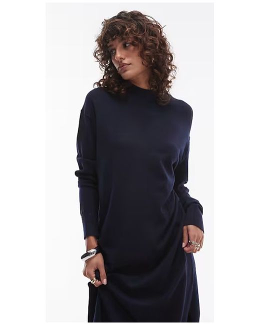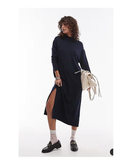 Mango semi high neck long sleeve maxi dress in navy.