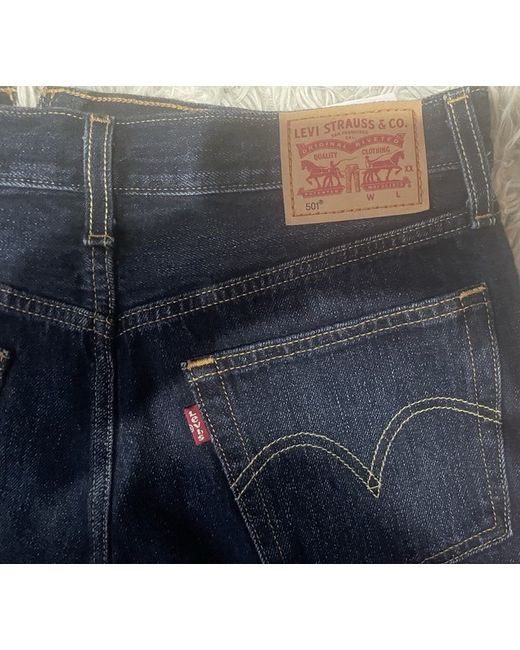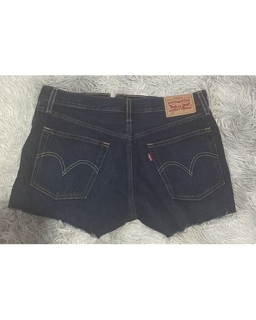 These Levi's shorts are perfect for any woman looking for a stylish addition to her wardrobe. With a slim fit and cut-off style, they are both flattering and trendy. Made from 100% cotton and washed in a dark shade, these shorts are both comfortable and durable. They are a W27, though I would say they are a smaller fit. The brand, Levi's, is well-known for their quality clothing and these shorts are no exception. They are perfect for any occasion and can be dressed up or down depending on the individual's style. The shorts are a size small and made in China. Add these blue shorts to your wardrobe today!
