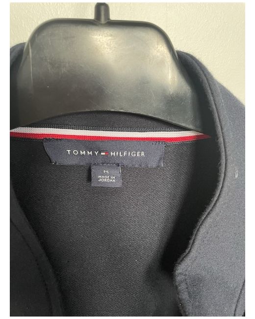 A soft cotton ladies navy blue Tommy Hilfiger military style jacket. Worn once and is too big hence the sale. Spare button still attached to care label