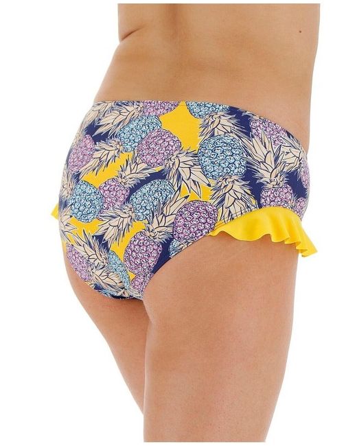 Women's Blue Yellow Pineapple Ruffle Trim Bikini Bottoms UK-16 NEW