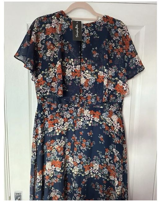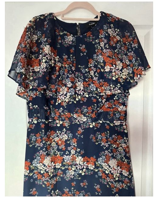 Women's Floral Navy Blue Red Mix Floaty CollarMaxi Dress BNWT 14