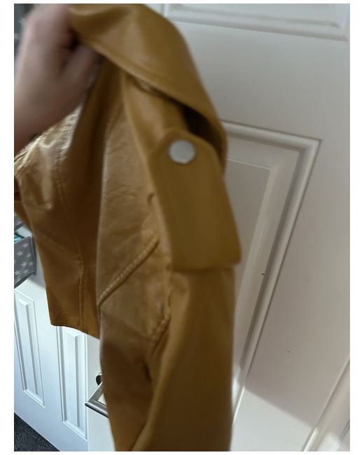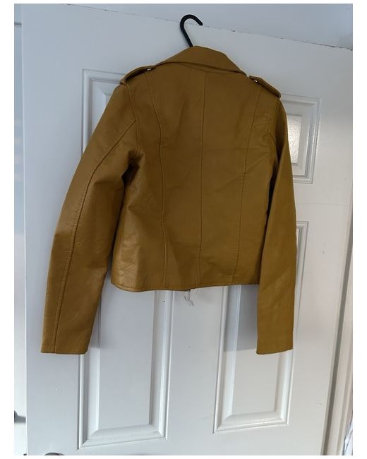 This mustard leather jacket by Quiz features a biker style with a zip closure and long sleeves. It is made of polyurethane and has a regular fit, making it ideal for casual occasions. The jacket is a size 8 and is designed for women, adding a trendy and edgy element to any outfit.