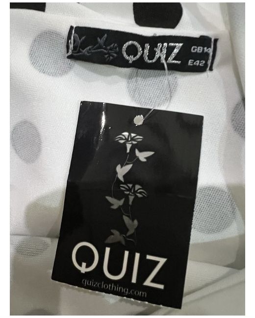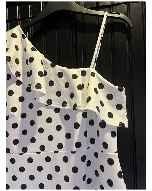 Lovely Quiz polka dot dress. One shoulder with ruffles and one with thin strap. White with black spots.