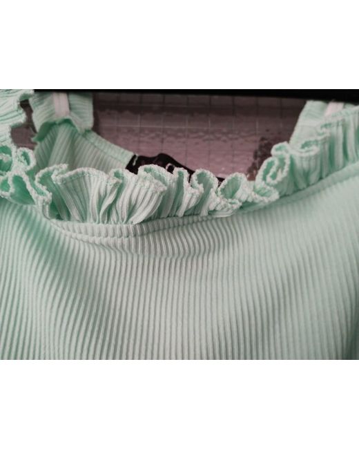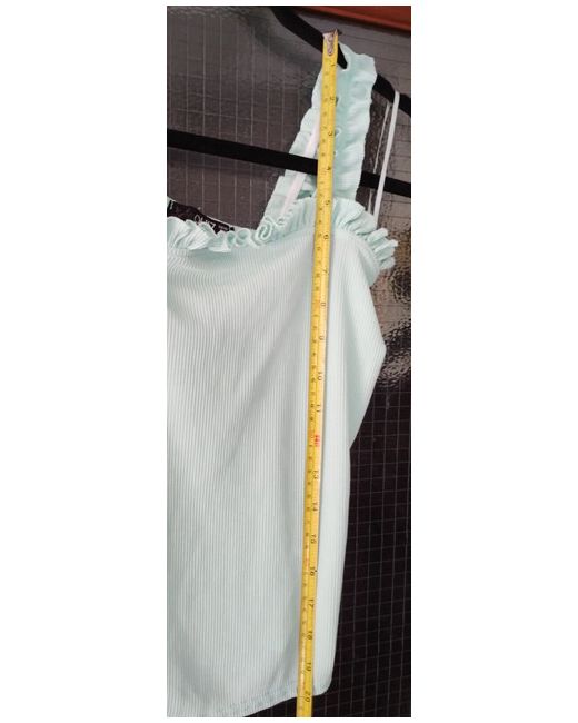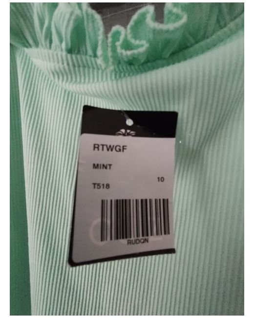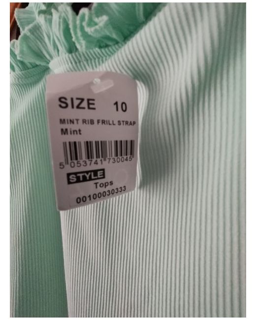 This Quiz crop top in mint green is a stylish addition to any wardrobe. The ribbed pattern, square neckline, and ruffle accents round neck and straps add texture and interest to the piece. The top is made from a blend of polyester and elastane, which provides stretch and comfort for all-day wear. The sleeveless design and cropped fit make it perfect for layering or wearing on its own. Hand wash only to keep the top looking its best. This Quiz crop top is available in size 10 and is suitable for travel, party/cocktail, or casual occasions. Unworn with tags.