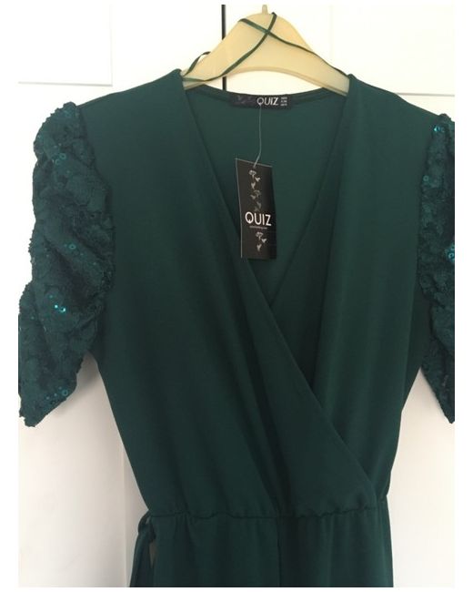 Stunning trouser-suit by Quiz. Never worn. Sequin and lace short sleeves. Bottle green colour.