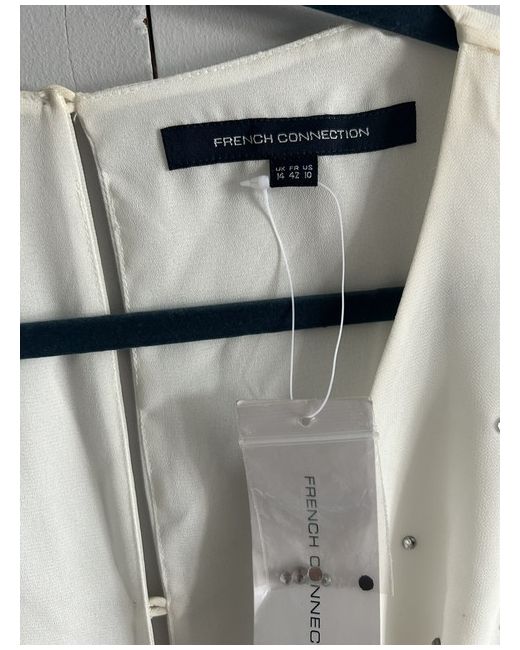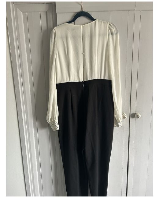 French connection Jumpsuit Size 14 BNWT. This is one of the most beautiful jumpsuits I’ve ever owned but sadly I’ve never been able to fit into it so it’s sat in my wardrobe with the tag still on. It’s a size 14, I would say it’s on the small side. The trousers part is black and and hang beautifully. The top is an off white with diamantés on. The material is like a chiffon. Button detail to cuff and buttons to the back with a deep V at the front. There is a tiny snag in one arm but not very noticeable. Was expensive new and the small snag reflects the price. Perfect for the coming A/W season, would be great for Christmas parties or winter wedding.