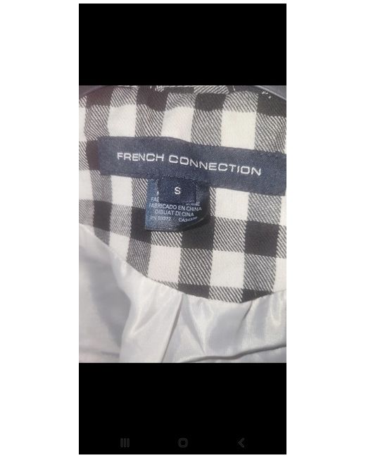 Introducing a stylish and sophisticated trench coat from the renowned brand French Connection. This coat is perfect for the fashion-conscious woman who wants to make a statement. It comes in a sleek black and white checked pattern that will complement any outfit, making it a versatile addition to your wardrobe. With its regular size S, this coat is tailored to fit your needs. Its elegant style is perfect for any occasion, and the trench coat design is a classic that will never go out of fashion.