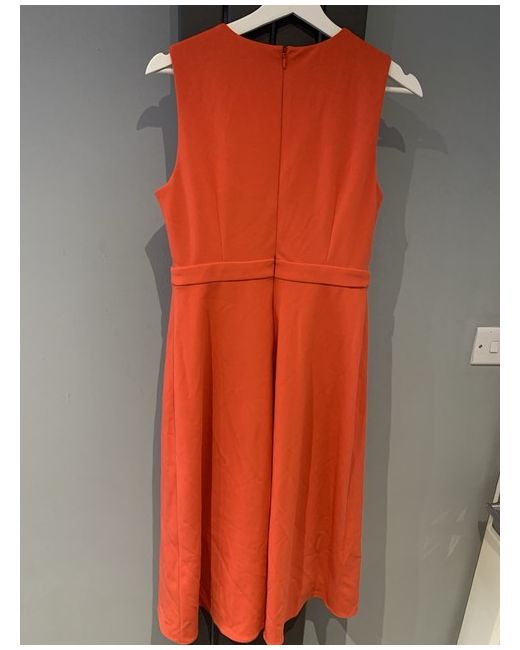 This orange DKNY dress is brand new with tags and designed in a mini style with a midi length. It is a size large and is intended for regular-sized women. The vibrant colour and stylish design make it a fashionable choice for various occasions. Perfect for women looking to add a pop of colour to their wardrobe, this dress is a versatile piece that can be dressed up or down to suit different preferences and settings.