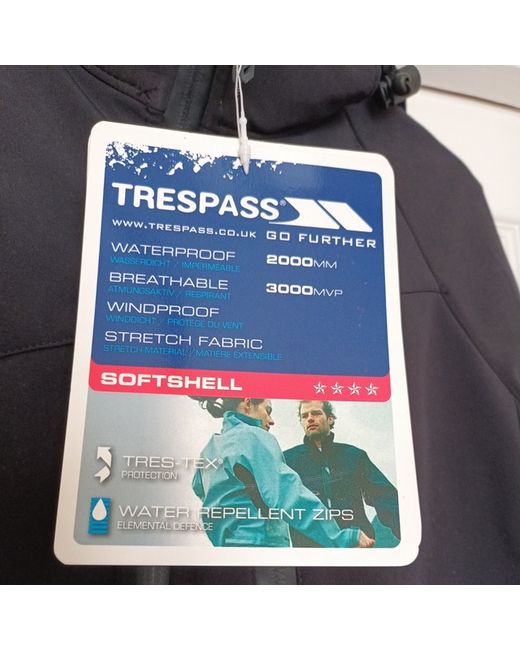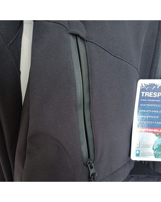 Trespass black women's softshell waterproof jacket with hood. Size L. BNWT. Waterproof up to 2000mm. Breathable. Zip pockets inside as well as outside.