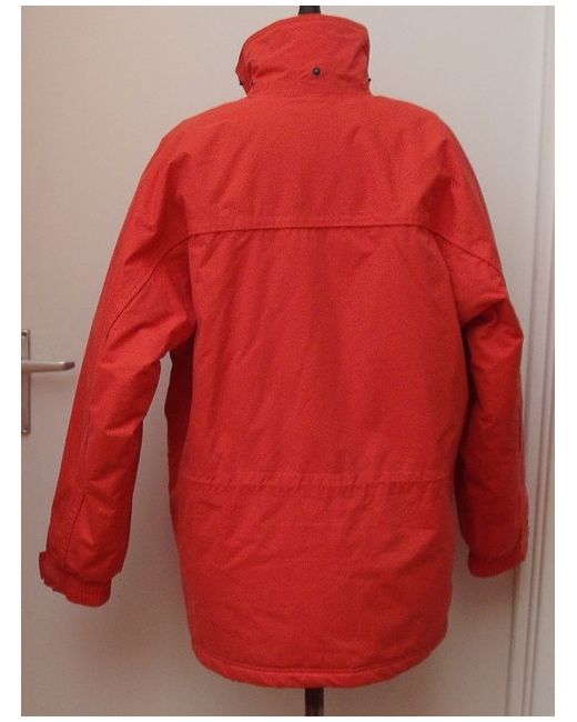 Deep coral red colour. Lined in grey fleece. Detachable hood fastens with press studs. Waterproof and windproof with taped seams. Front zip and Velcro fastening. Zipped pockets. Beat the wind and chill with Coldheat insulation.