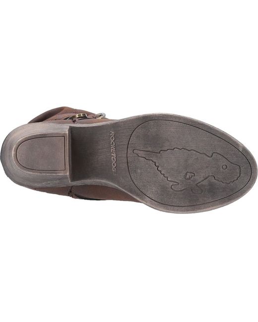 The Sidestep boot is a tall western style pull-on boot with mid-height heel and ankle strap detail. Rocket Dog. Upper Material: Polyurethane. Sock Length Heel Style: Block. Colour: Brown. Bag Depth.