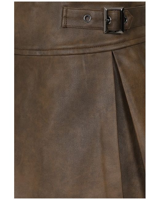 MAYA SKIRT This PU skirt has a faux leather appearance with a rich brown tone. Its design is structured with pleats, giving it a flared, mini-skirt silhouette. This PU skirt has a faux leather appearance with a rich brown tone.