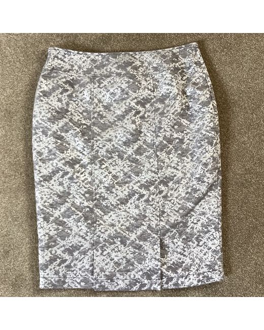 Women's Silver New Textured Patterned Lined Below Knee Straight Skirt 12