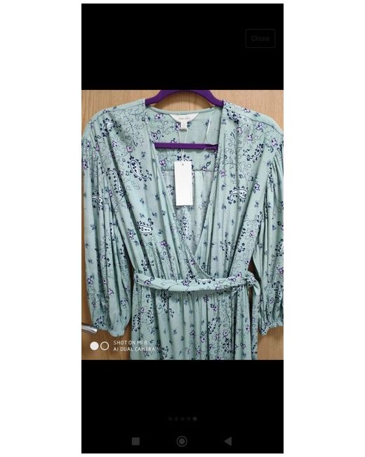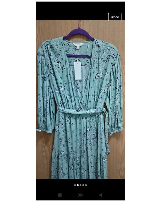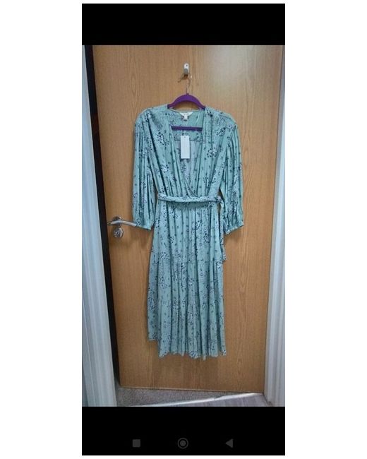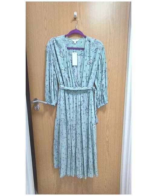 Marks And Spencers Light Green Patterned Midi Dress Size 8 Short. Wrap Dress. Dispatched with Evri Tracked.