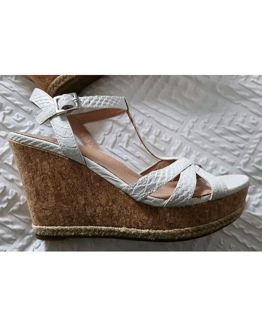 Elevate your summer style with these UGG wedge sandals in a pristine white shade. Crafted with premium leather and a comfortable wedge heel, these sandals are perfect for any casual occasion. The size 5.5 fits women who appreciate quality and style. These sandals are a must-have for any fashion-forward woman. The UGG brand is known for its premium quality, and these wedge sandals are no exception. The high heel adds a touch of elegance while keeping your feet comfortable all day long. Ideal for pairing with your favourite summer outfits, these sandals are a great addition to any wardrobe.