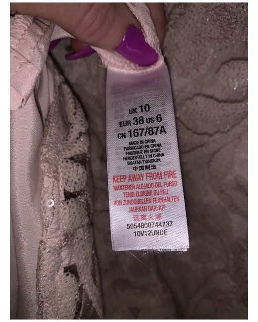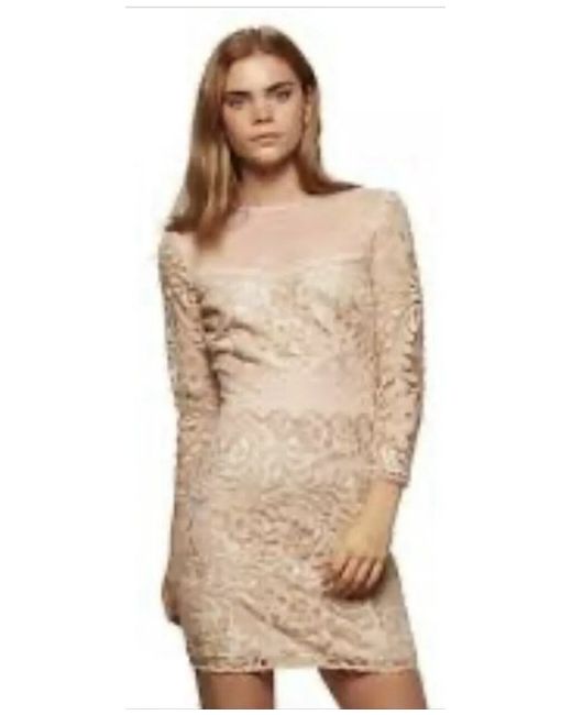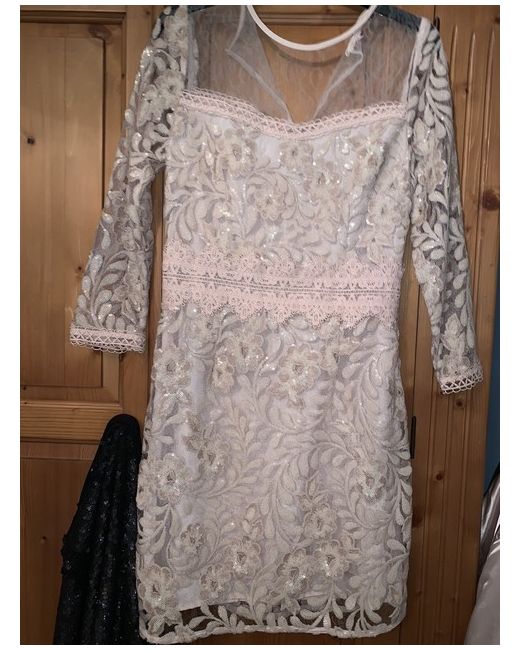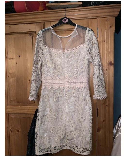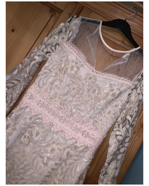 Black Eva Bodycon Dress The bodycon dress is the perfect embellished party dress! Dress up this look with a pair of heels. Bodycon Sequins lace Machine washable Colour: Nude Brand tags have been removed Mayb some loose or missing sequins Although looks fine to me the only defect I can see is that it needs a new button to the back of the neck Priced low due to defect Was £110