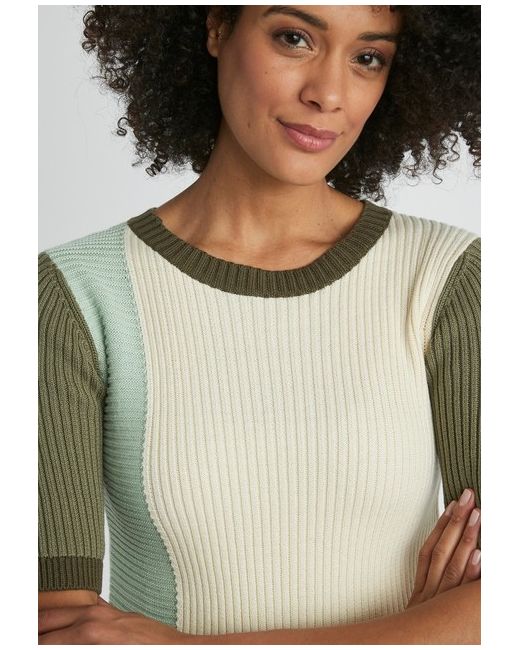 When the temperature dips, you'll find this colourblock short sleeve sweater so useful. In a cosy blend so you can wear it on cooler days. Striking and stylish in a palette of seasonal colours, blended with cotton for softness and a quality feel. In a distinctive contrast rib design, it's a knit that works with smart or casual separates. Regular fit. 52% Cotton, 48% Acrylic. Length: 61cm (24inch) approx.