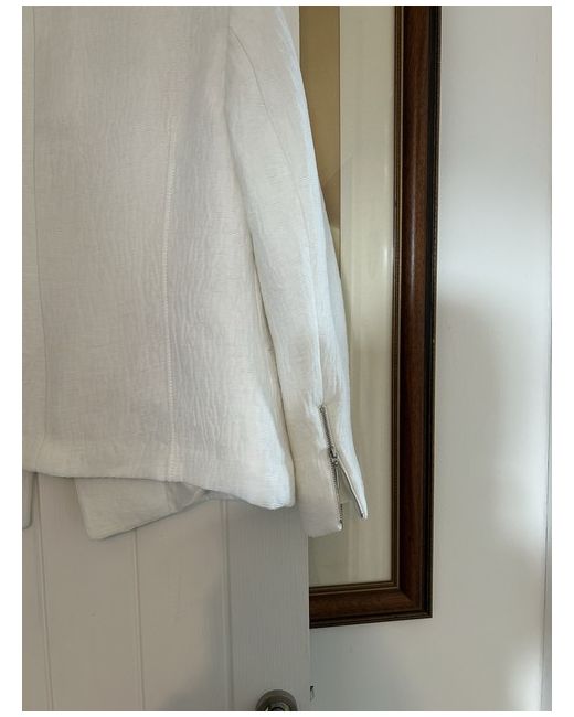 Lovely, slightly padding jacket-edge to edge, zip detail on cuffs, mock pockets Ivory in colour, perfect for a wedding guest/ mother of the bride.