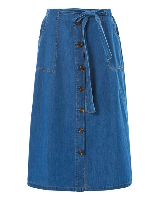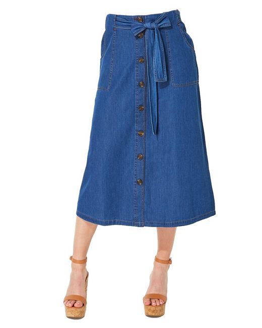 Functional and stylish, this skirt has two front pockets and a button up fastening. Machine Washable. 100% Cotton.
