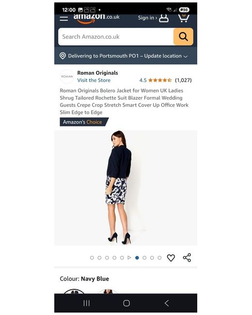 Roman Bolero Jacket, Navy Blue, size 10, New, never worn...