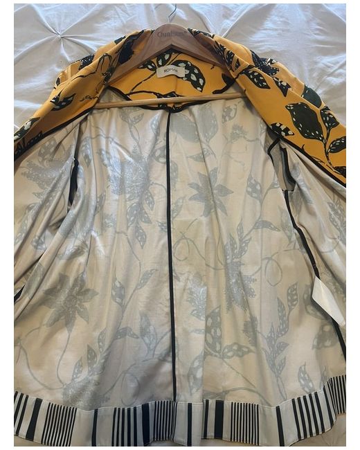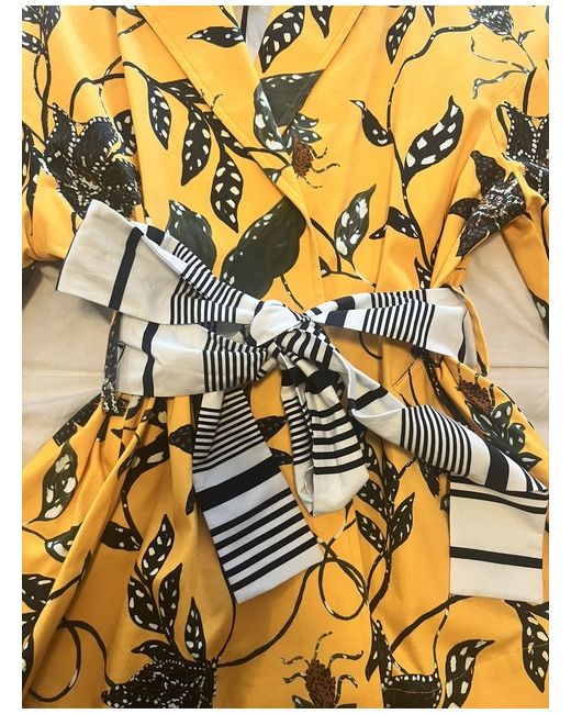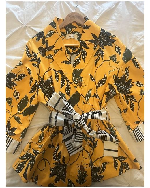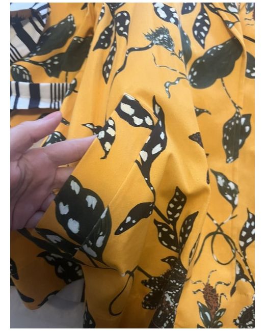 Size is 40 which is UK12 but as it’s a tie up jacket it’s very adjustable so for UK 10 will fit as well. Striking yellow colour with beautiful leaf pattern and black and white tie belt, just incredible!