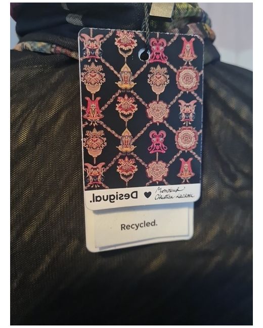 A gorgeous Desigual top. The size is marked as Large but as with a lot of Desigual items, it comes up a little smaller. Also typical of Desigual, the sleeves are slim. The material is in two layers with plain black underneath and the pattern on the top. It a really lovely item and the original price was 69 euros.