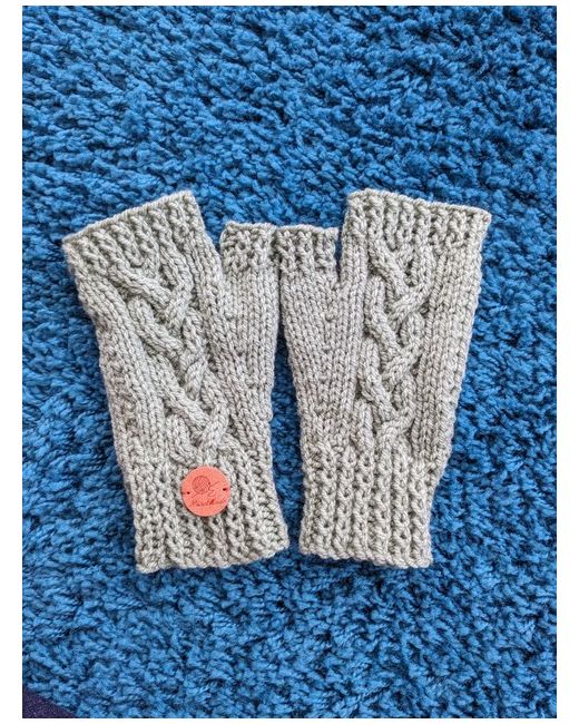 Handknitted olive green fingerless mittens a twisted cable pattern and twisted ribs. Knitted in acrylic aran weight yarn. For a size guide, it's my hand in the photo and I use small size rubber gloves. From a non-smoking and pet free home. Please see my other hand knitted items. ORDERS WELCOME