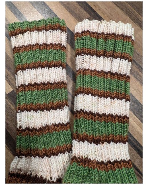 Hand knitted socks. 93% acrylic and 7% PBT. Will fit UK sizes 5.5-6.5 as they stretch. Perfect gift. Please note, as they are hand made, the pattern lines do not match.