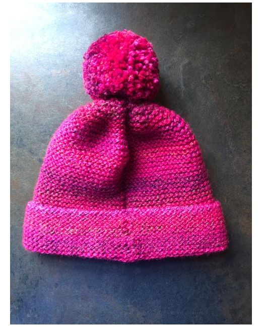 Hand Knitted Bobble Hat, Cerise Multicoloured.