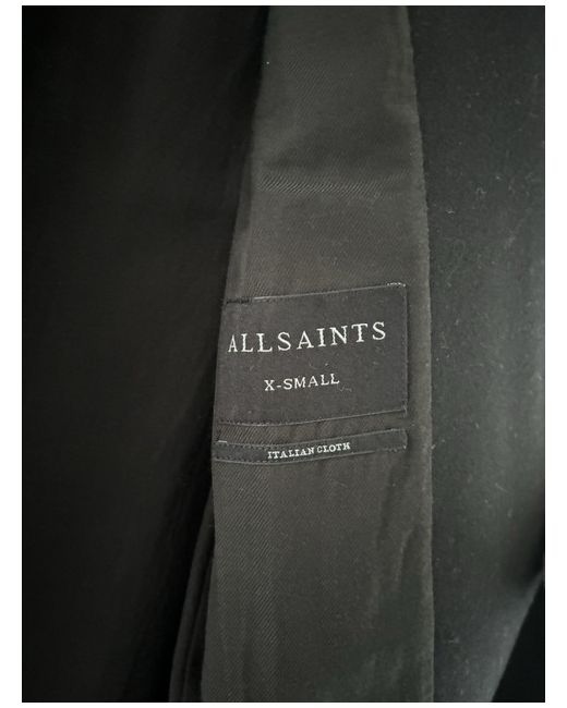 Elevate your everyday style with this stunning AllSaints Wool Coat in classic black. Crafted from high-quality wool, this trench coat is perfect for any occasion. The coat features a regular fit, XS size, and a viscose lining for added comfort. With its sleek design and AllSaints branding, this coat is a must-have for any fashion-forward woman. The wool coat is perfect for layering over any outfit, adding a touch of sophistication to your look. Don't miss out on this stylish and timeless piece.