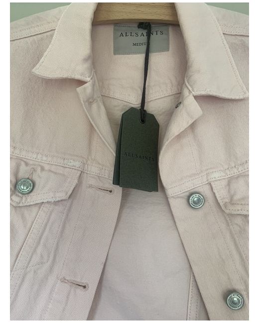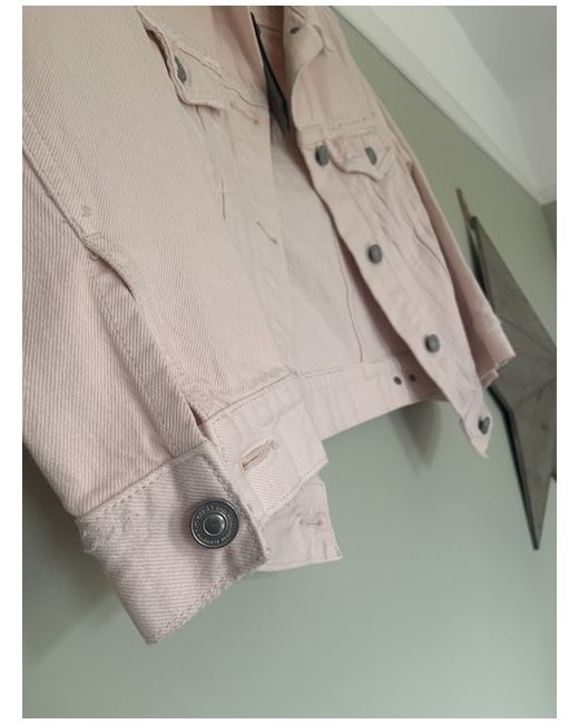 This jacket is designed to be fitted. The Ruby Denim Jacket is cut to a shrunken silhouette for a close fit. Crafted from pure cotton in a pale pink wash - perfect for breezy summer days. 3/4 length arms. Lightly distressed. Model wears a medium. Would suit a size 8 -10.