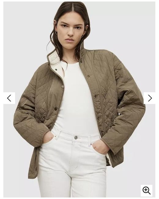 womens all saints madison reversible jacket white/khaki size large(14) #r.