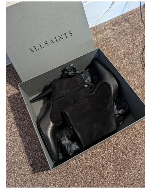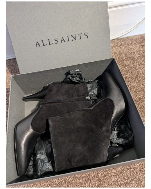 Elevate your shoe game with these stylish ankle boots from AllSaints. Crafted from high-quality leather, these boots are perfect for any fashion-forward woman looking to add a touch of sophistication to her wardrobe. With a sleek black colour and versatile design, these boots are sure to pair well with any outfit. Featuring a comfortable fit and durable construction, these boots are perfect for everyday wear. Whether you're running errands or heading out for a night on the town, these AllSaints boots will keep you feeling confident and stylish. Don't miss out on the opportunity to add these must-have boots to your collection today. size 7 RRP £228