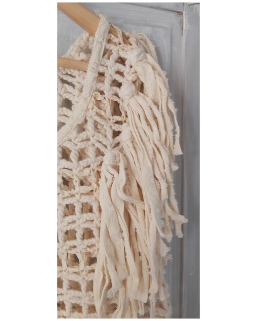 never worn. I've taken a picture of the materials used too make this as there is a mixture. beautiful top. ribbon knitting through it in layers.