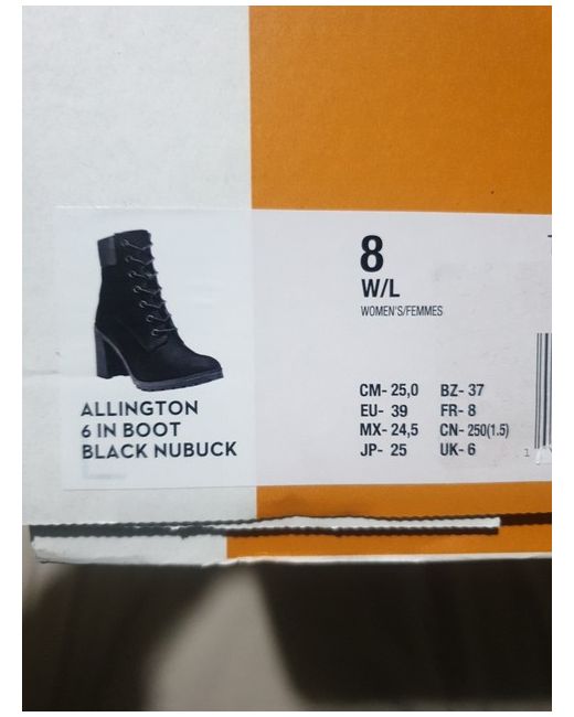 Timberland Women's Allington 6 in boot Black Nubuck UK 6. Brand new with box . The box has abit of tear on it as shown in pics