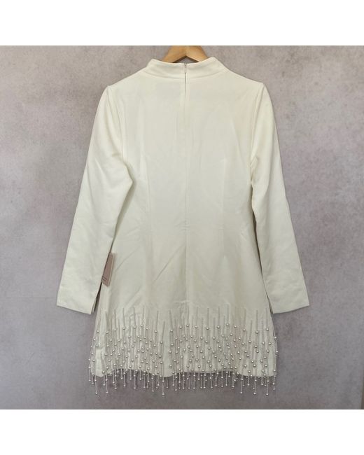Elegantly crafted to flatter with a fit & flare design, the Odd Muse white dress is a stunning addition to any wardrobe. Its long sleeves and short length make it a versatile piece for various occasions, while the satin fabric ensures a luxurious feel. The dress features a timeless white hue, complemented by an exquisite pearl drop detail that adds a touch of sophistication. Designed for the modern woman, this dress comes in a size XL and is a regular fit, ensuring comfort without compromising on style. The Muse brand is synonymous with quality and attention to detail, making this dress a true representation of chic, contemporary fashion. Whether you're attending a daytime event or an evening soiree, this dress promises to be a head-turner.