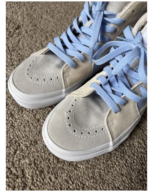 Vans Women's Filmore Hi Sneaker, real Suede with two tone Cream/taupe UK5/EU38-brand New with baby blue lace, half fleeced lined around the ankle, please check photos for more details.