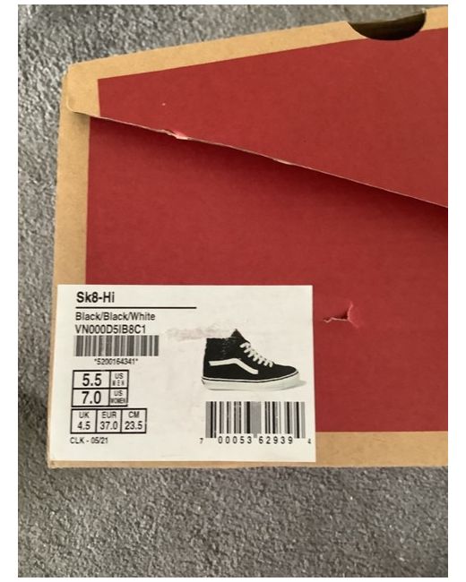 1 pair of Vans SK8-Hi size uk women’s 4.5. Only worn once with box, like new.
