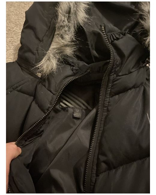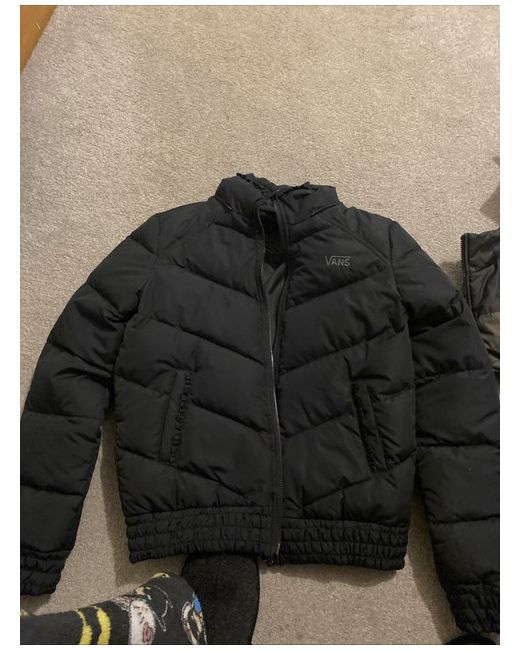 This is a new black Vans puffer jacket for women in size M. The coat is made of polyester with a zip closure, suitable for casual occasions.