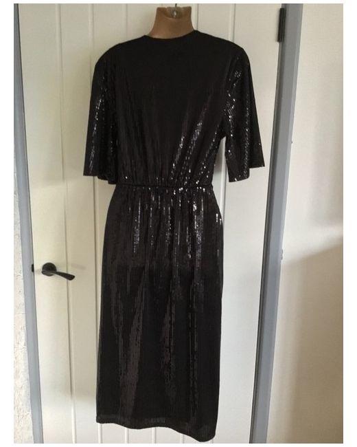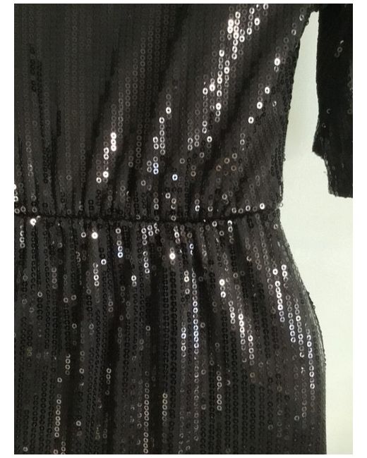 Heavyweight due to the full sequin coverage. Low V neckline that can be pinned if you don’t fancy baring too much cleavage. Fully lined with 100% polyester black lining.