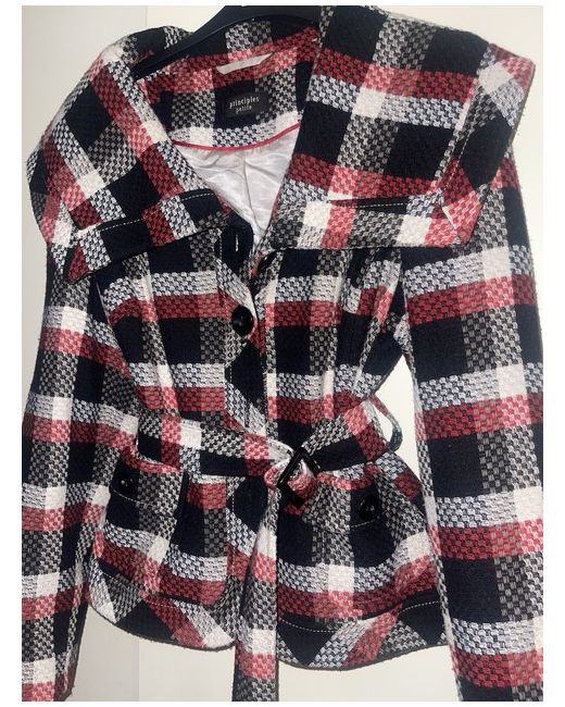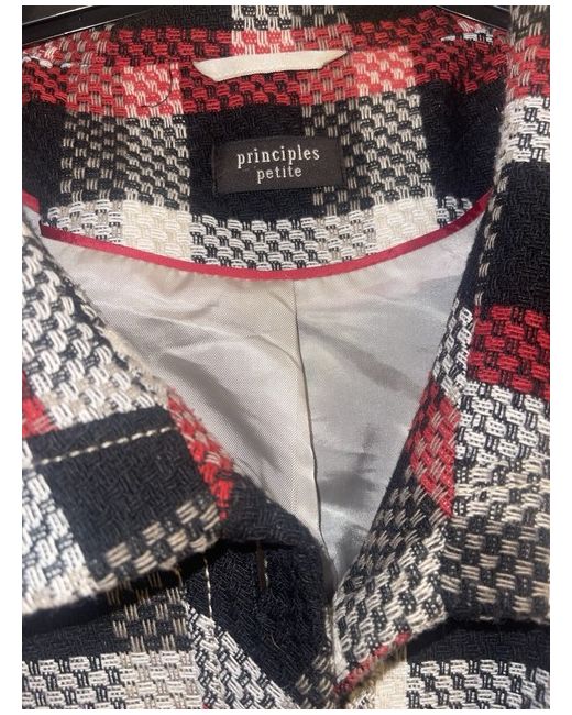 This is a good quality used Principles coat for women in size S, designed in a classic checkered pattern with a striking red colour. Tailored for petites, this stylish basic jacket is made from polyester, both for the outer shell and lining material. Perfect for adding a pop of colour and a touch of sophistication to any outfit, this coat combines quality construction with a trendy design for a versatile addition to any wardrobe.